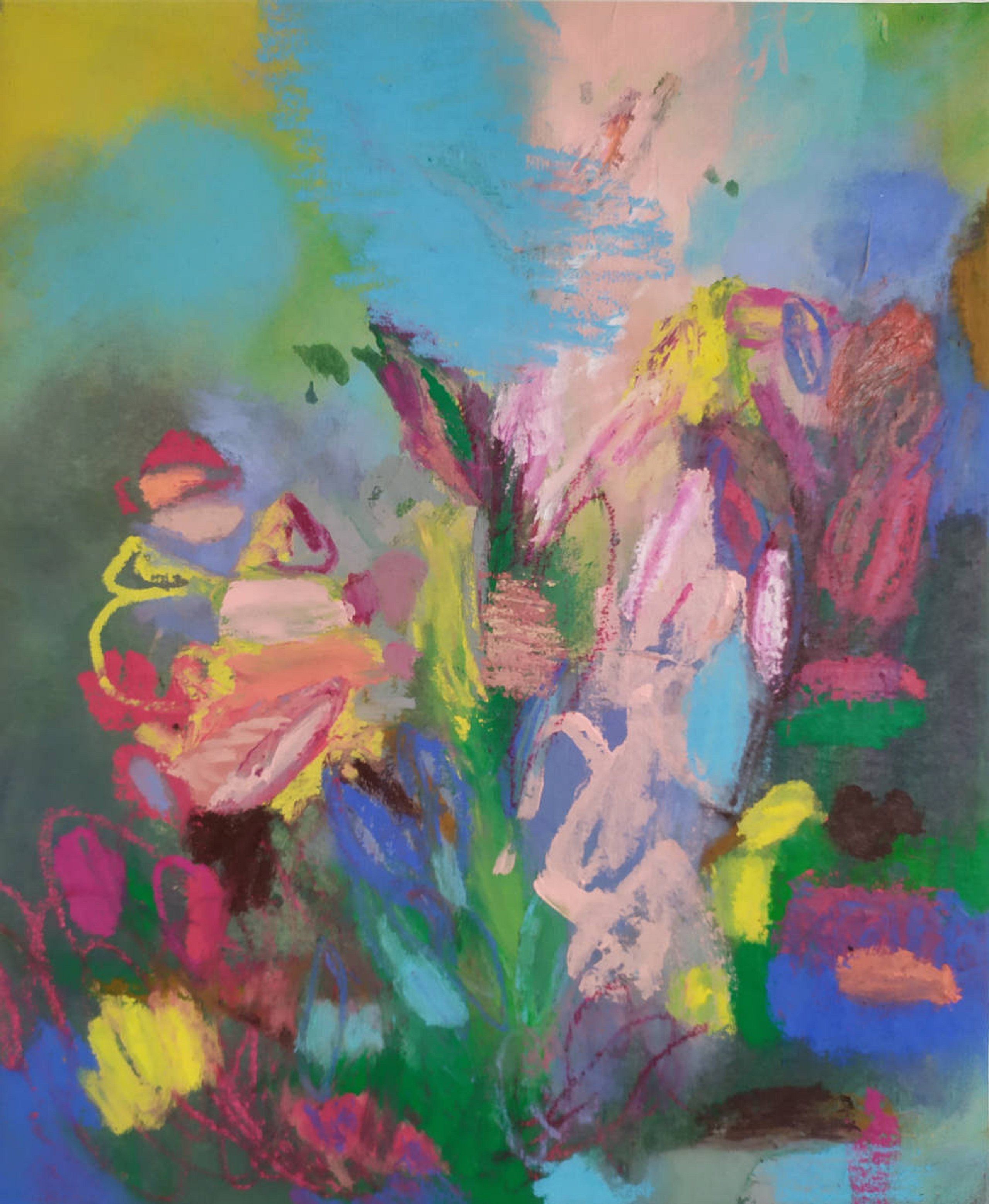 Catherine Maddens superpose, efface, ponce, dessine, détourne des objets du quotidien pour inventer sa propre alchimie picturale — entre énergie dynamique et silence en suspens, matière dense et transparence fluide.