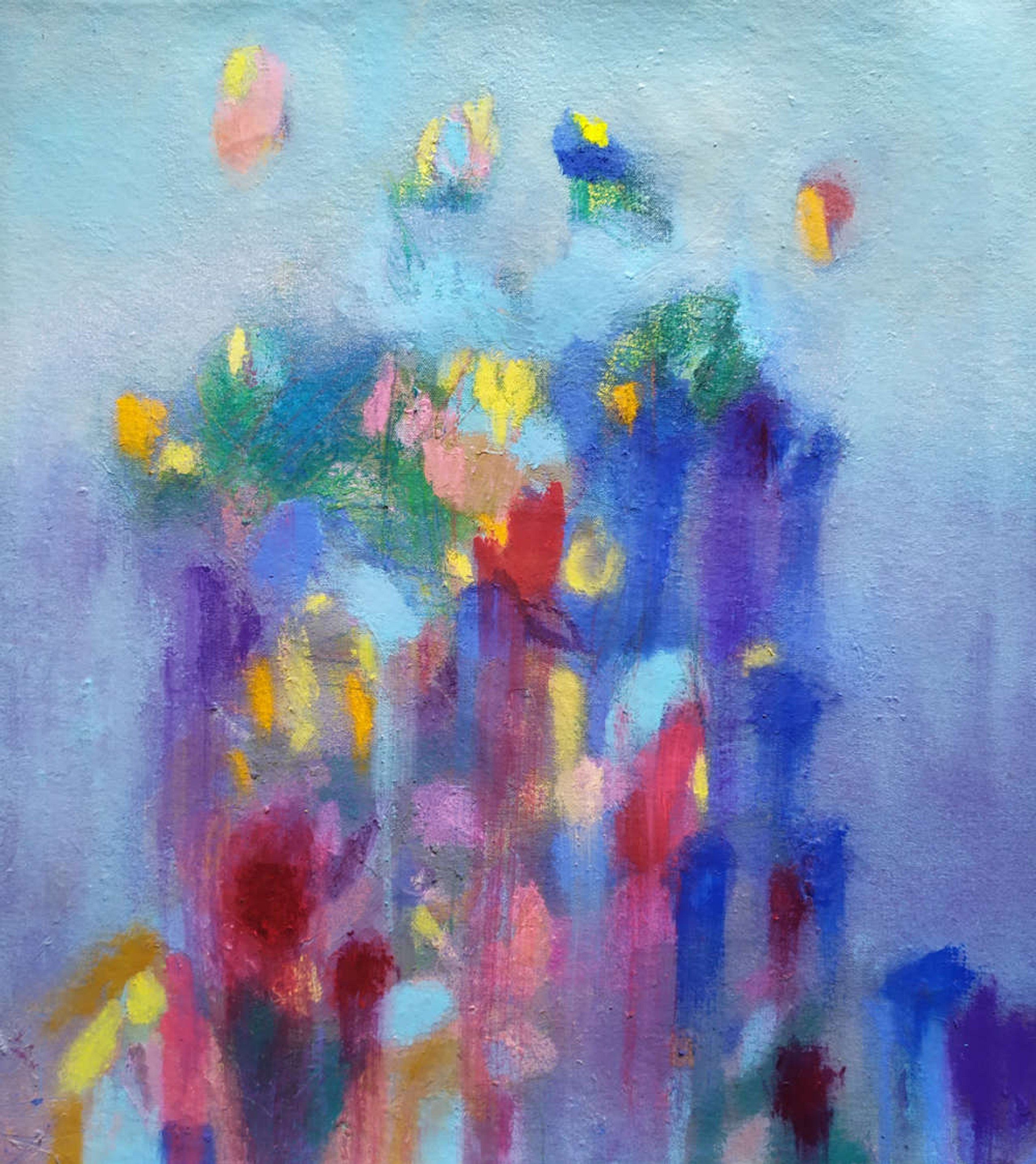 Sa peinture est un champ d’expérimentations où la Couleur devient vibration, et où la sensation de la Lumière surgit de relations chromatiques subtiles.